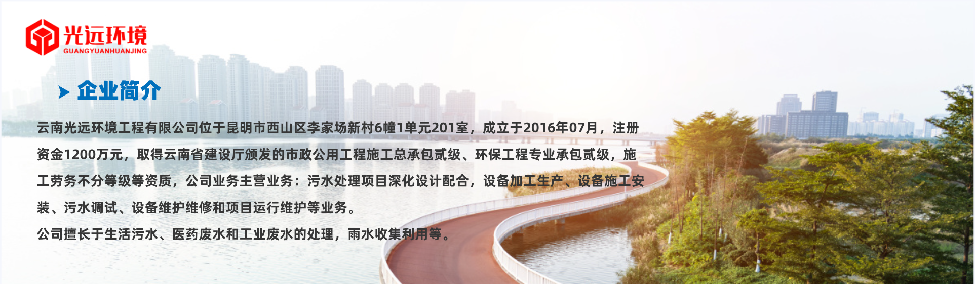 云南光遠(yuǎn)環(huán)境工程有限公司位于昆明市西山區(qū)李家場新村6幢1單元201室,成立于2016年07月,注冊資金1200萬元,取得云南省建設(shè)廳頒發(fā)的市政公用工程施工總承包貳級、環(huán)保工程專業(yè)承包貳級,施工勞務(wù)不分等級等資質(zhì),公司業(yè)務(wù)主營業(yè)務(wù):污水處理項目深化設(shè)計配合,設(shè)備加工生產(chǎn)、設(shè)備施工安裝、污水調(diào)試、設(shè)備維護(hù)維修和項目運行維護(hù)等業(yè)務(wù)。,擁有專業(yè)建技術(shù)工程師5人,建造師3的,項目管理人員若干,累計完成50多個項目,成為五家500強(qiáng)企業(yè)合作伙伴,為多個客戶解決水污染治理的難題。